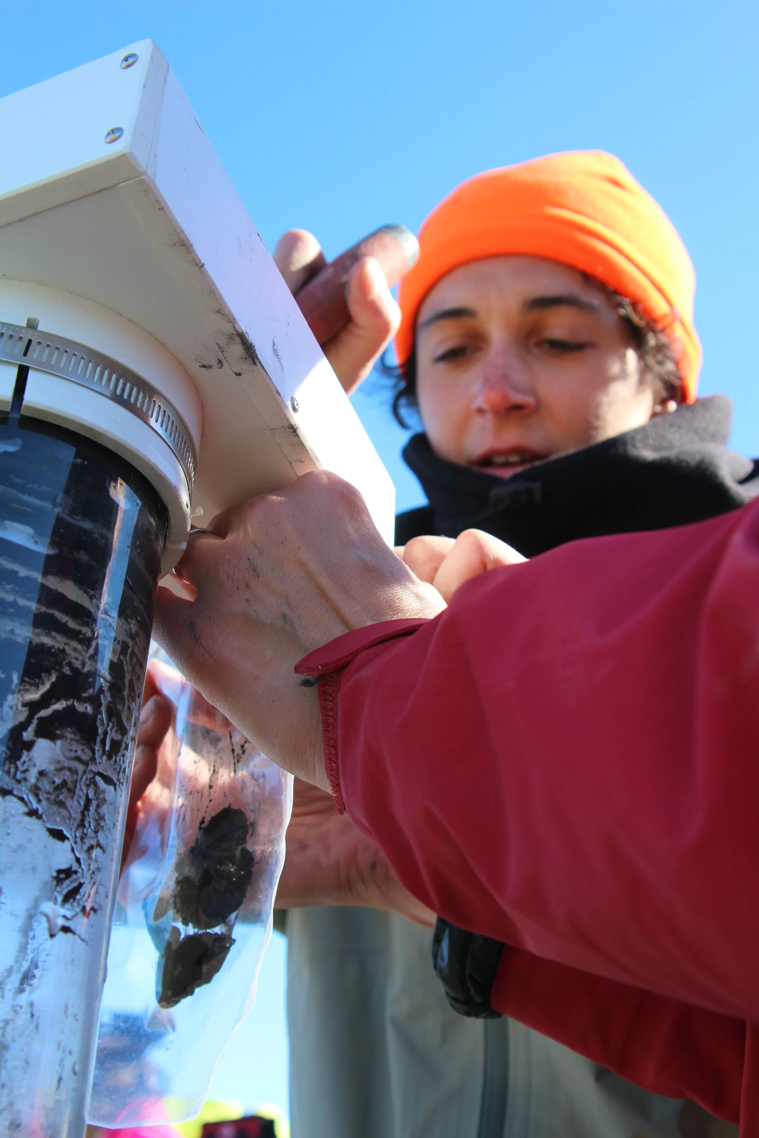 Imagine floating on top of a lake on an inflatable raft/air mattress, holding nearly 40 pounds of equipment and water-logged lake mud by a single rope, and pulling it up slowly and completely vertically so that the layers remain intact…